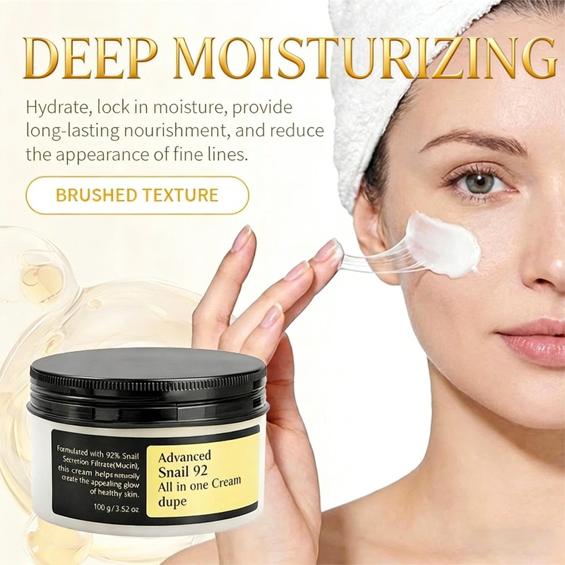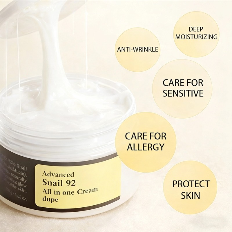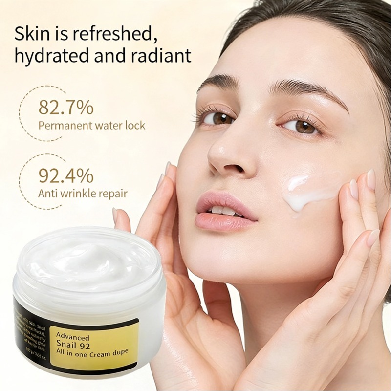 Unsere Advanced Snail 92 All-in-One Cream wurde für intensive Feuchtigkeitspflege und Anti-Aging-Wirkung entwickelt. Das 92%ige Schneckensekretfiltrat repariert und nährt trockene Haut, während die leichte, gebürstete Textur für schnelles Einziehen sorgt – ganz ohne Fettfilm, für langanhaltendes Wohlbefinden. Die Creme speichert Feuchtigkeit in der Haut, polstert feine Linien auf und verleiht einen jugendlichen, strahlenden Teint. Sie eignet sich perfekt für die tägliche Anwendung und verwandelt trockene, fahle Haut mit jeder Anwendung in einen hydratisierten, gesunden Teint.