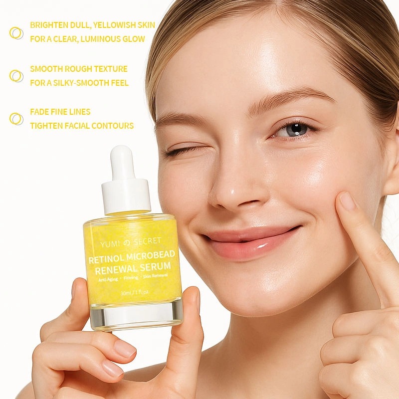 Unser Retinol Microbead Renewal Serum ist ein hochwirksames Anti-Aging-Produkt mit innovativer Mikroverkapselungstechnologie. Die Formel mit Retinol, Pro-Xylane, Kollagenpeptiden und mehreren beruhigenden Inhaltsstoffen strafft die Haut, reduziert Falten, hellt den Teint auf, spendet Feuchtigkeit und stärkt die Hautbarriere. Dank seiner leichten Textur ist es für alle Hauttypen geeignet. Wir bieten umfassende OEM/ODM-Anpassungsmöglichkeiten.