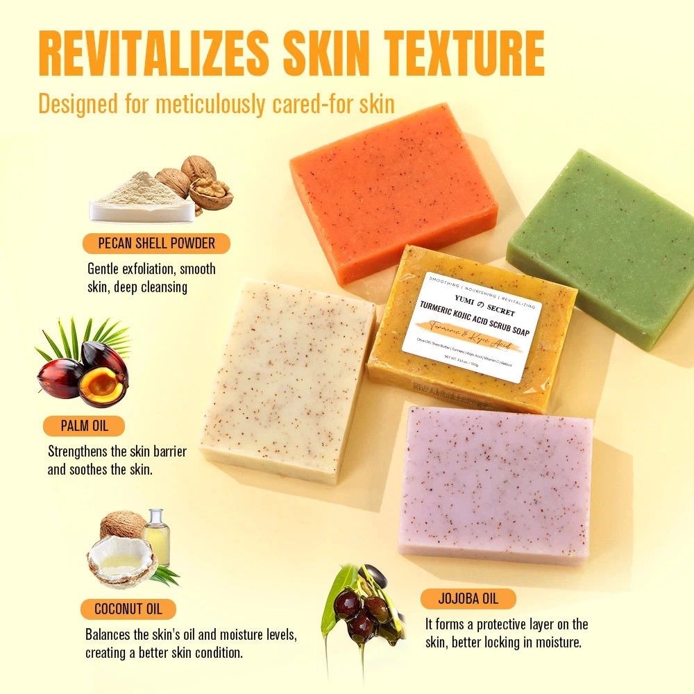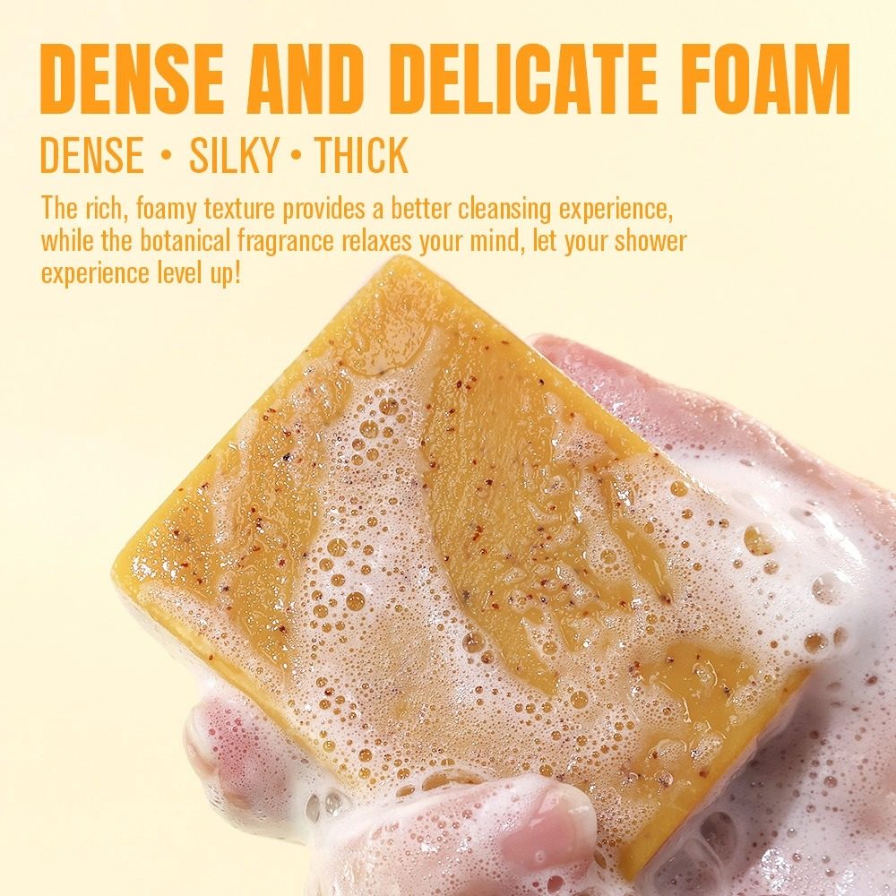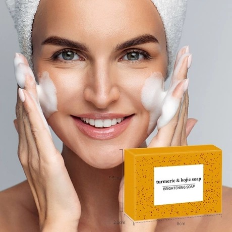 Diese handgefertigte Kurkuma-Seife vereint natürliche, vegane Inhaltsstoffe mit aufhellender und aknehemmender Wirkung. Sie reduziert effektiv fahle Haut und reinigt sanft jeden Tag – für alle Hauttypen. Die feste Kurkuma-Seife ist CPNP- und HALAL-zertifiziert und als OEM-Eigenmarkenprodukt erhältlich. Individuelle Verpackungsoptionen für Ihre Marke sind inklusive.